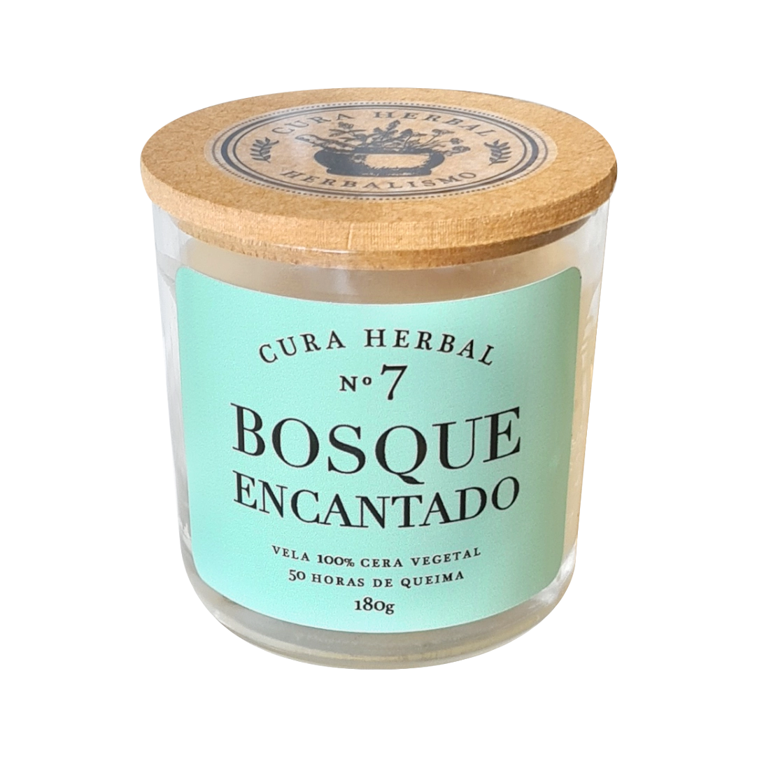 A vela Cura Herbal Bosque Encantado tem aroma herbal de Alecrim, Lírio, Lavanda e Madeiras Defumadas.