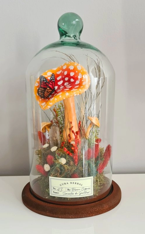 Com pedra de Cristal e cogumelos feitos à mão A: 30 cm D: 15 cm