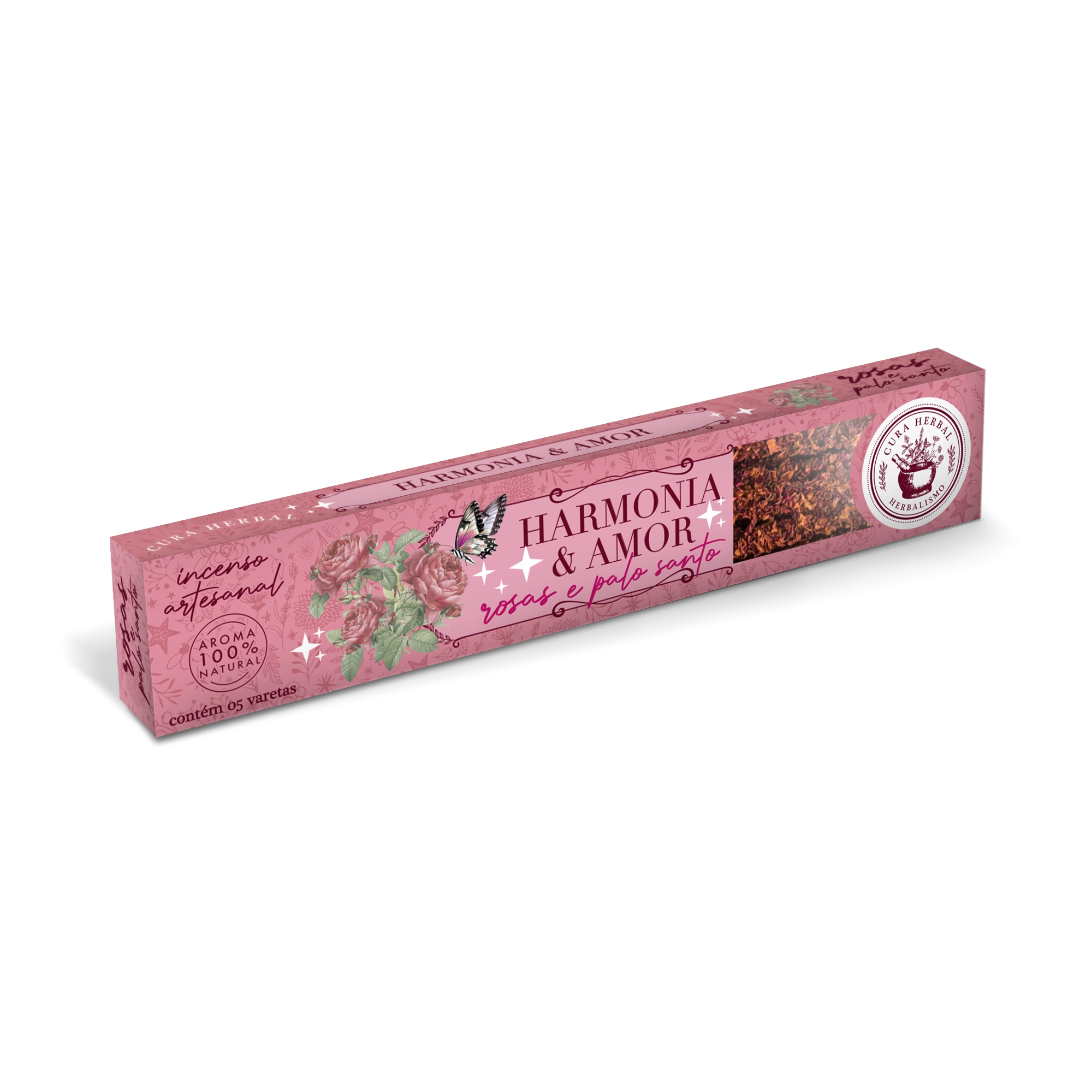 Incenso Harmonia e Amor Rosas e Palo Santo Cura Herbal