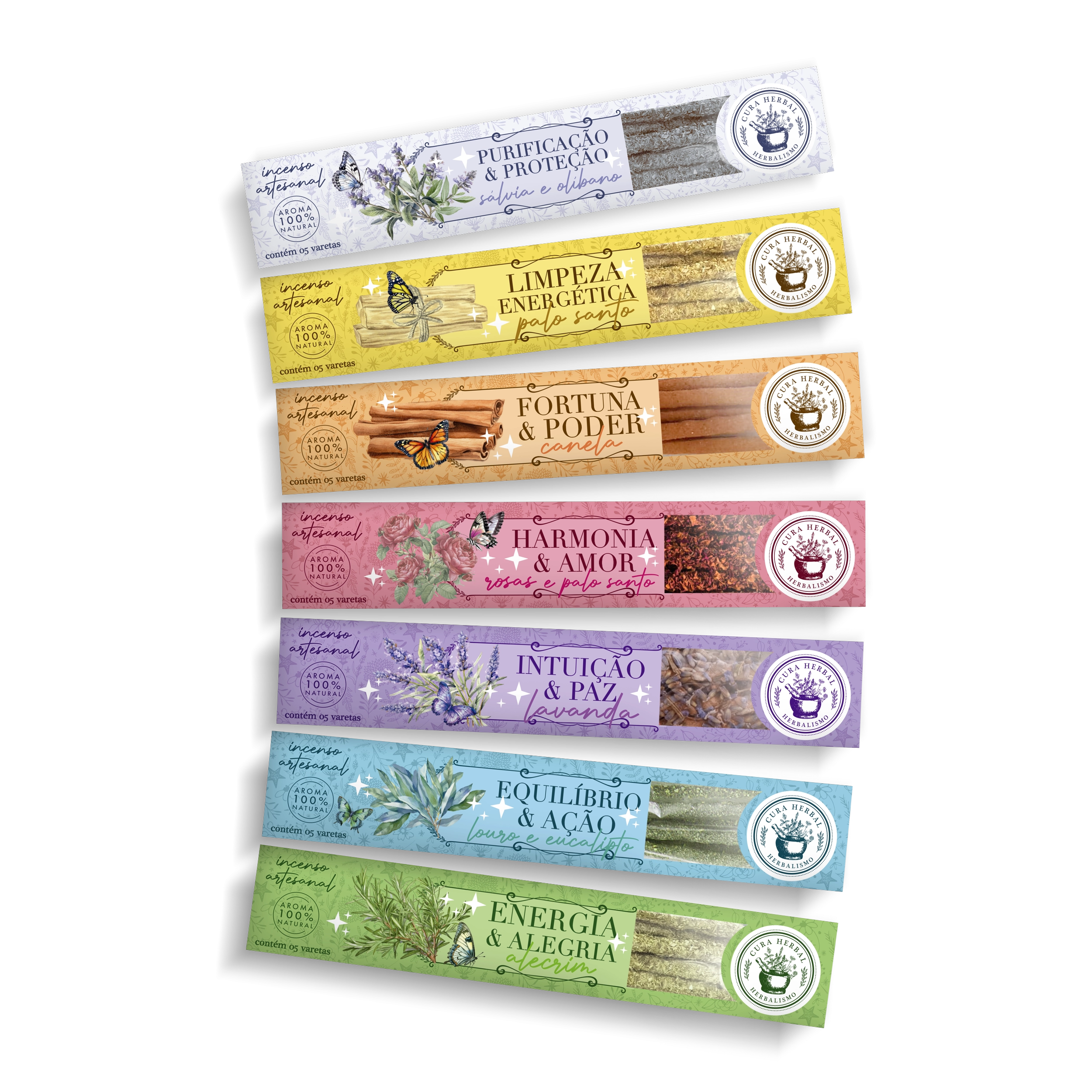 Incensos artesanais feitos à mão, 100% naturais com ervas e resinas. Contém um mantra poderoso no verso da caixinha para entoar ao acender o incenso.