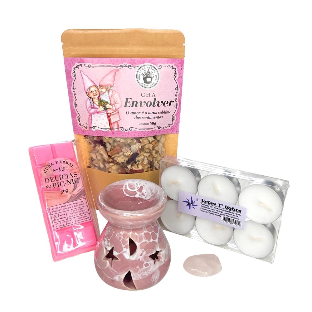 Chá Envolver 50g (Maçã, Hibisco, Chá Branco, Canela e Estévia. Possui um sabor adocicado e azedinho, 100% natural. Esse blend tem o poder de exaltar as energias do amor e da sensualidade.)